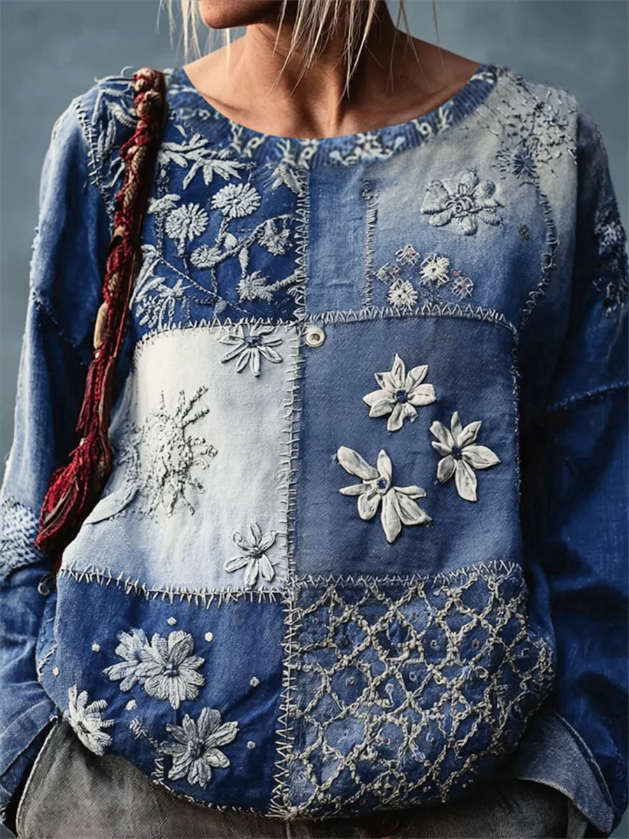 Women's Artistic Floral Print Casual Top