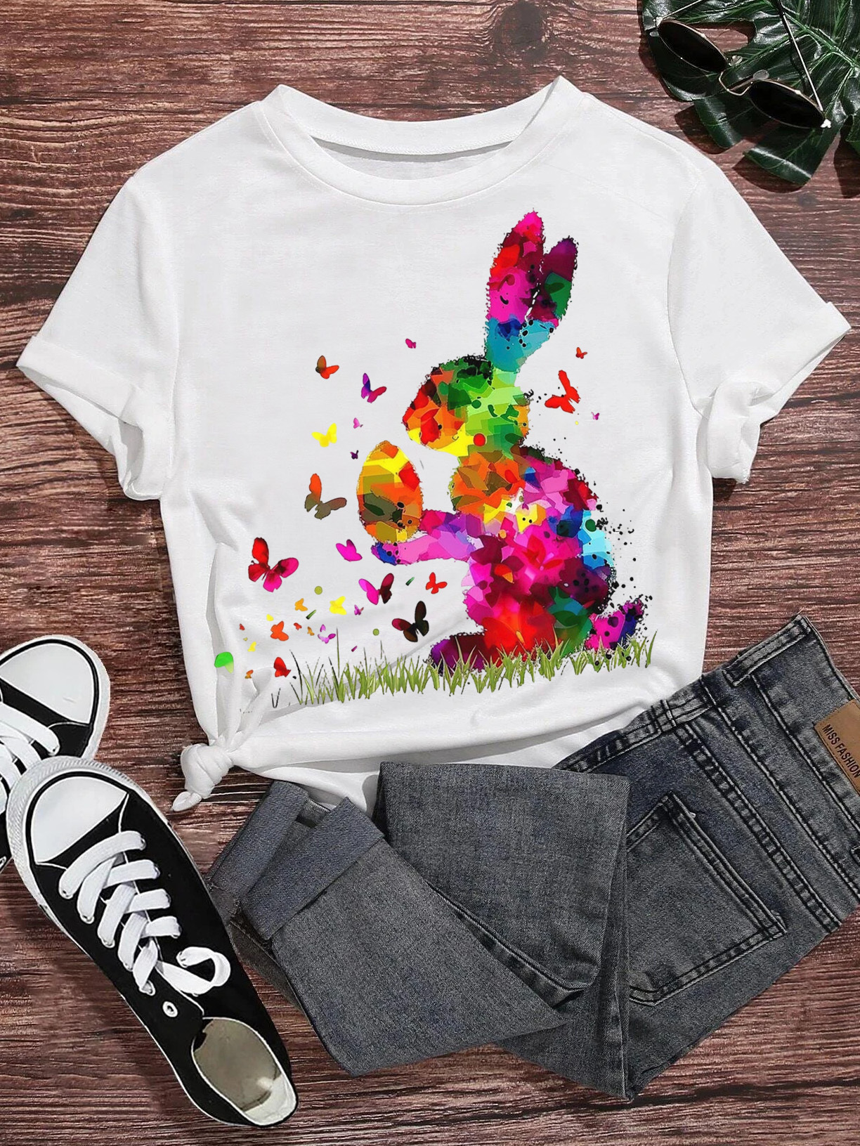 Women's Bunny Painted Art Print T-Shirt