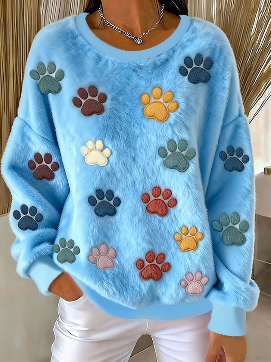 Women's Cat Paw Printed Flannel Sweatshirt