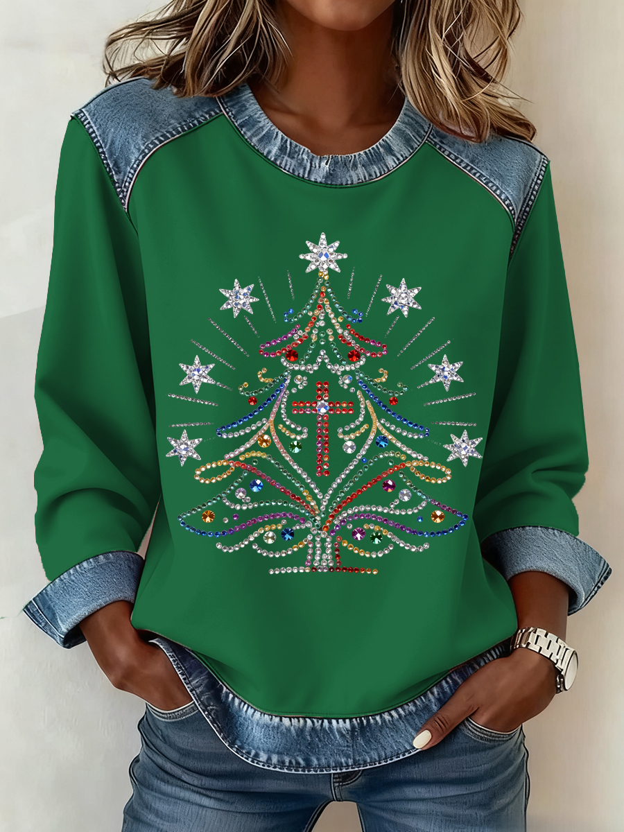 Women's Christmas Pattern Patchwork Art Sweatshirt