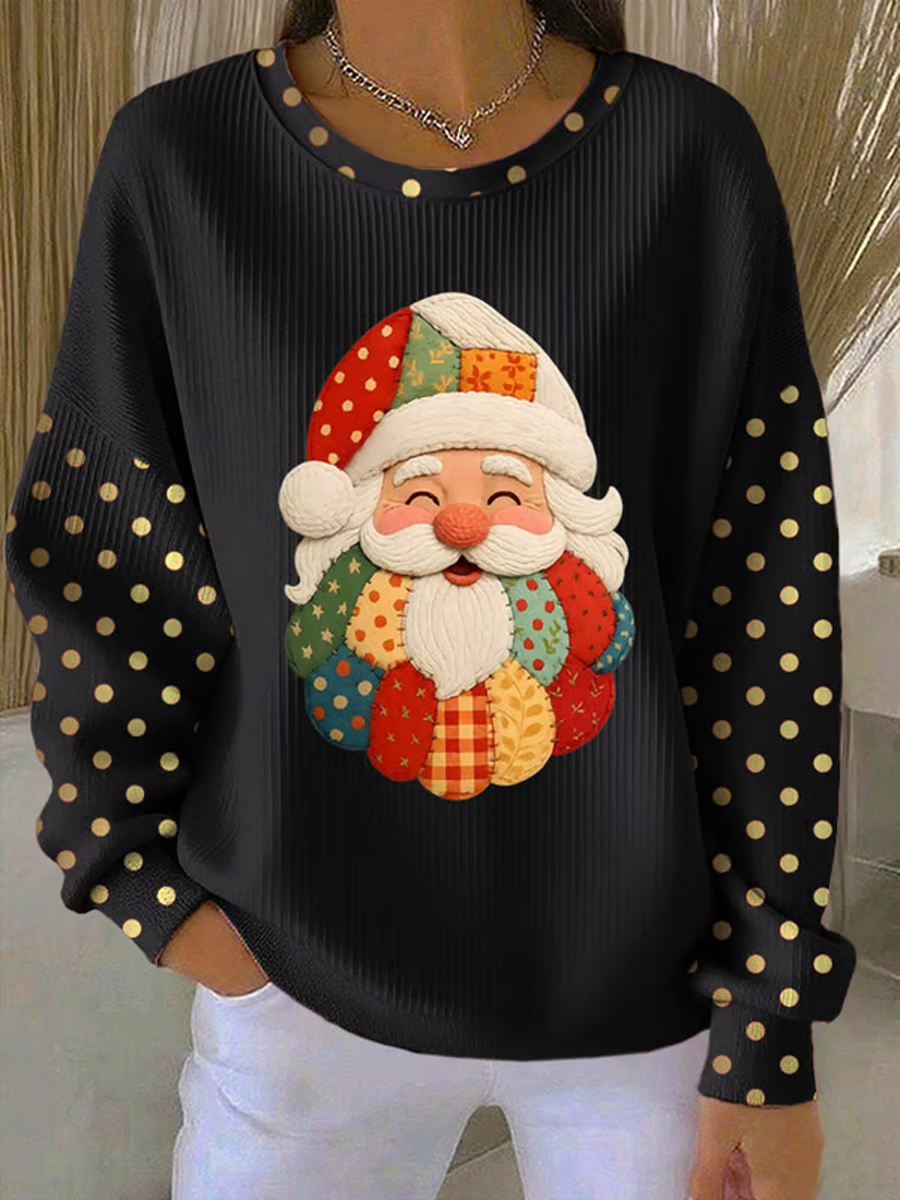 Women's Christmas Santa Claus Art Ribbed Round-Neck Sweatshirt