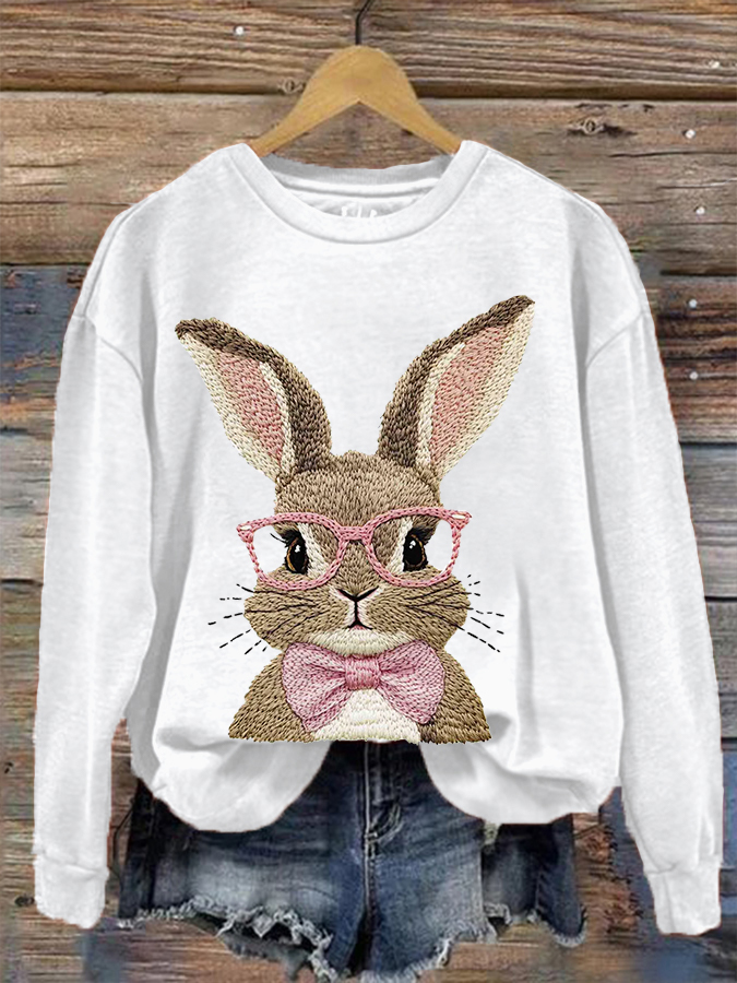 Women's Cute Bunny Happy Easter Casual Sweatshirt