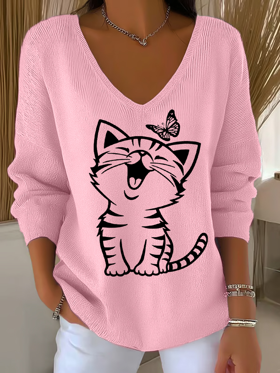 Women's Cute Cat Print Casual Long-Sleeve Top