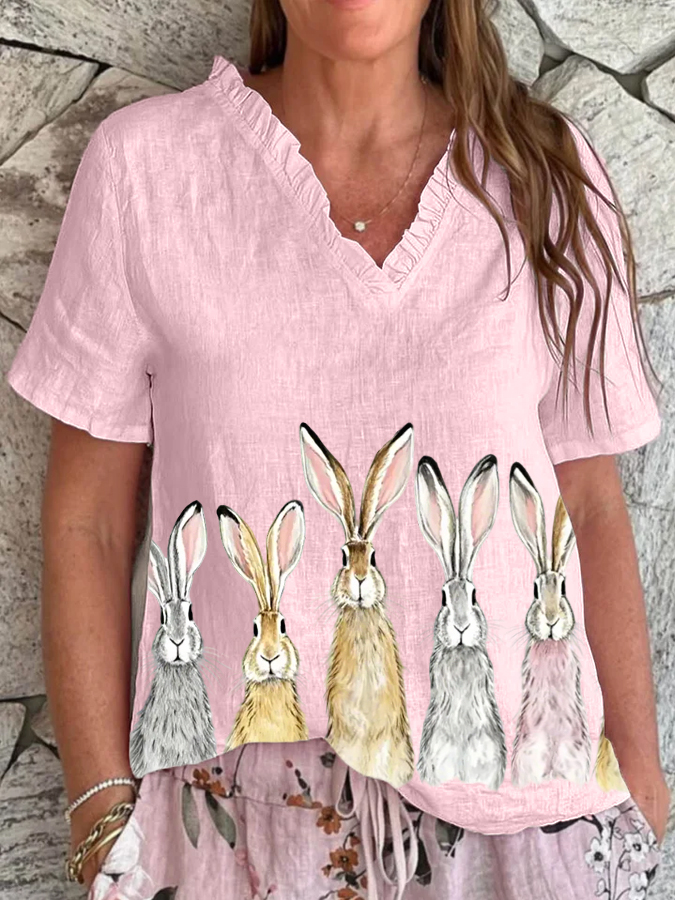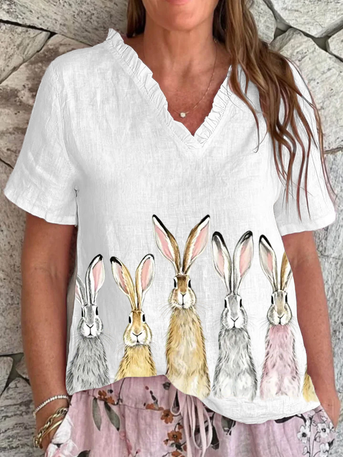 Women's Cute Hares Print Happy Easter Casual Shirt
