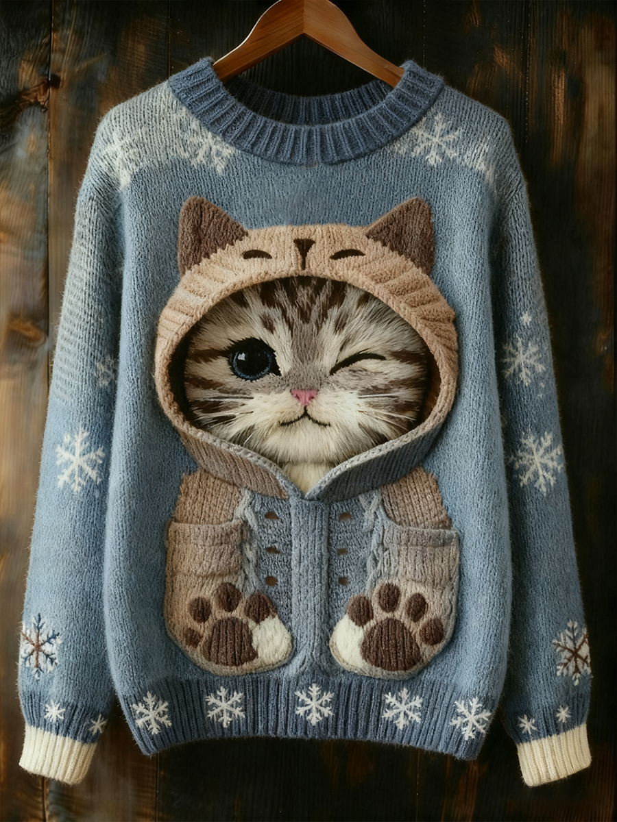 Women's Cute Winter Cat Art Sweatshirt