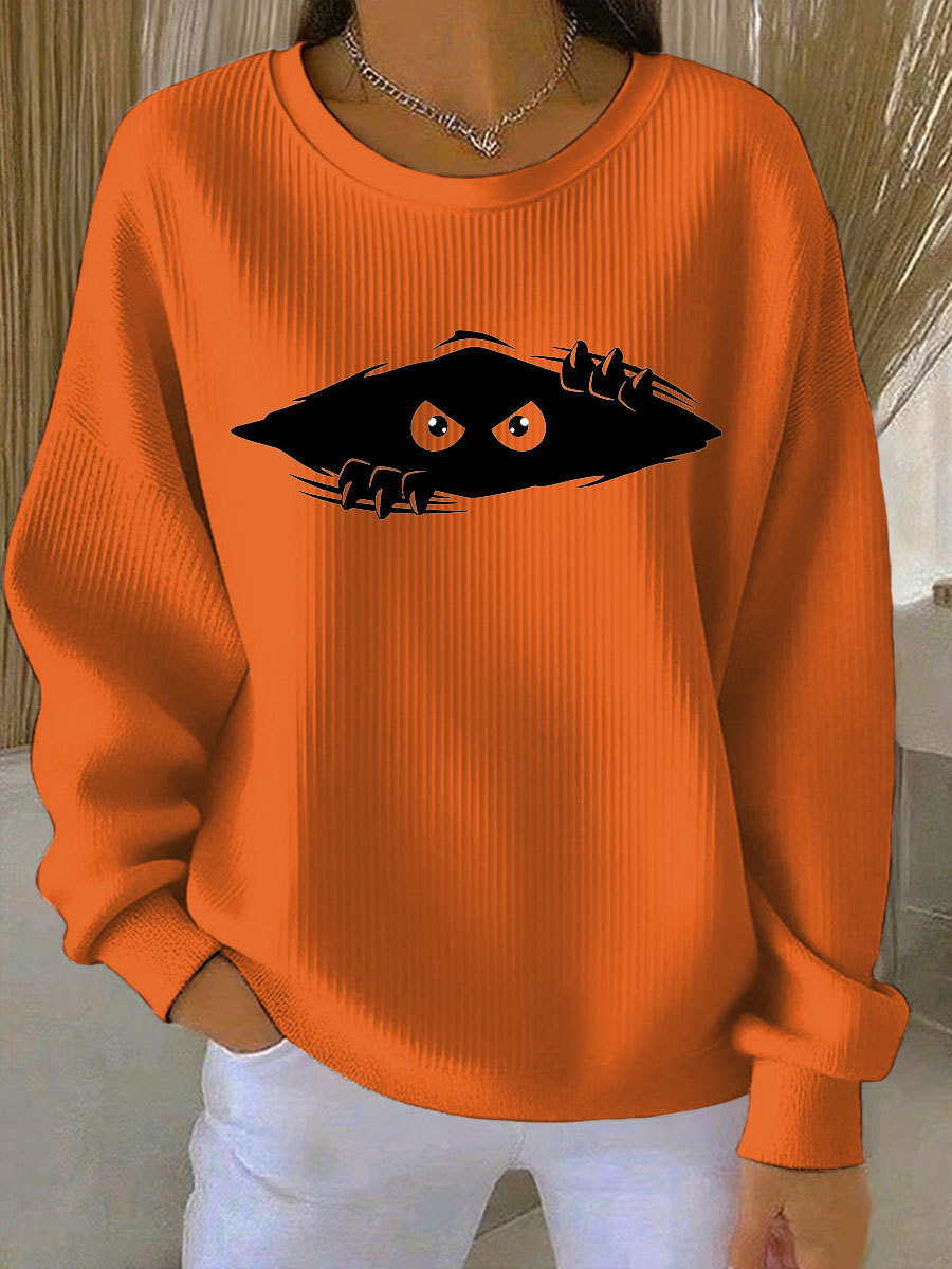 Women's cutu cat Printed Vintage Casual Loose Long Sleeve Top