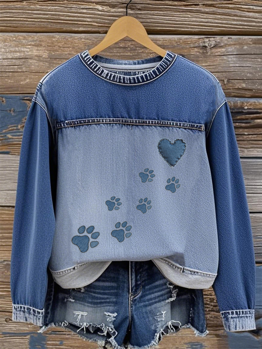 Women's denim paw sweatshirt