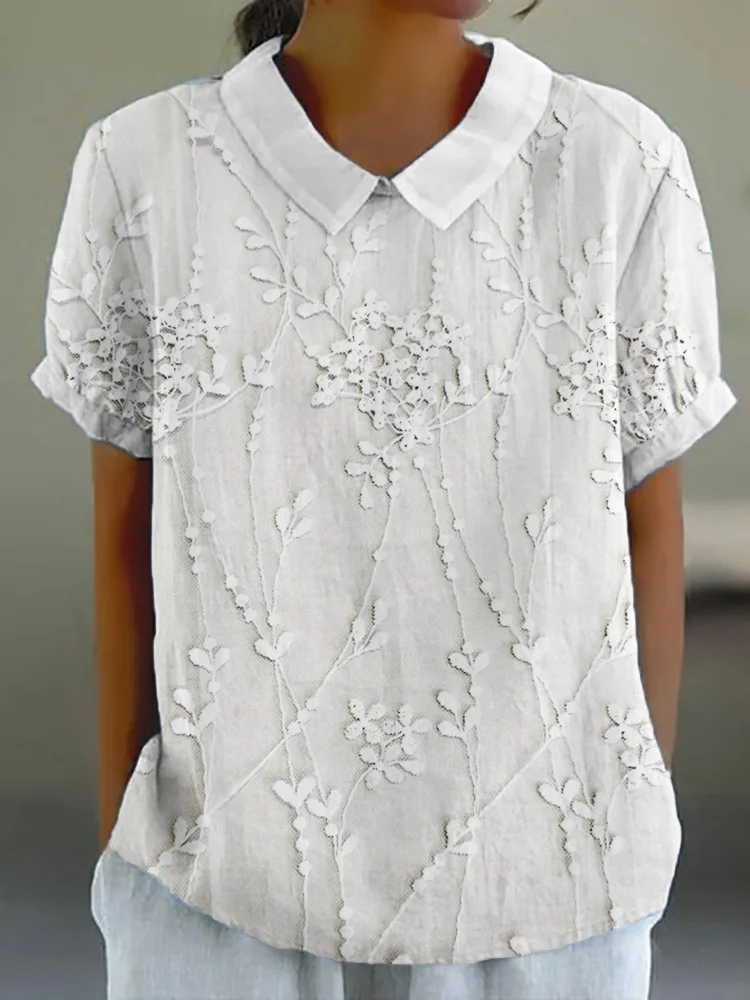 Women's Elegant Floral Embroidered Linen Shirt
