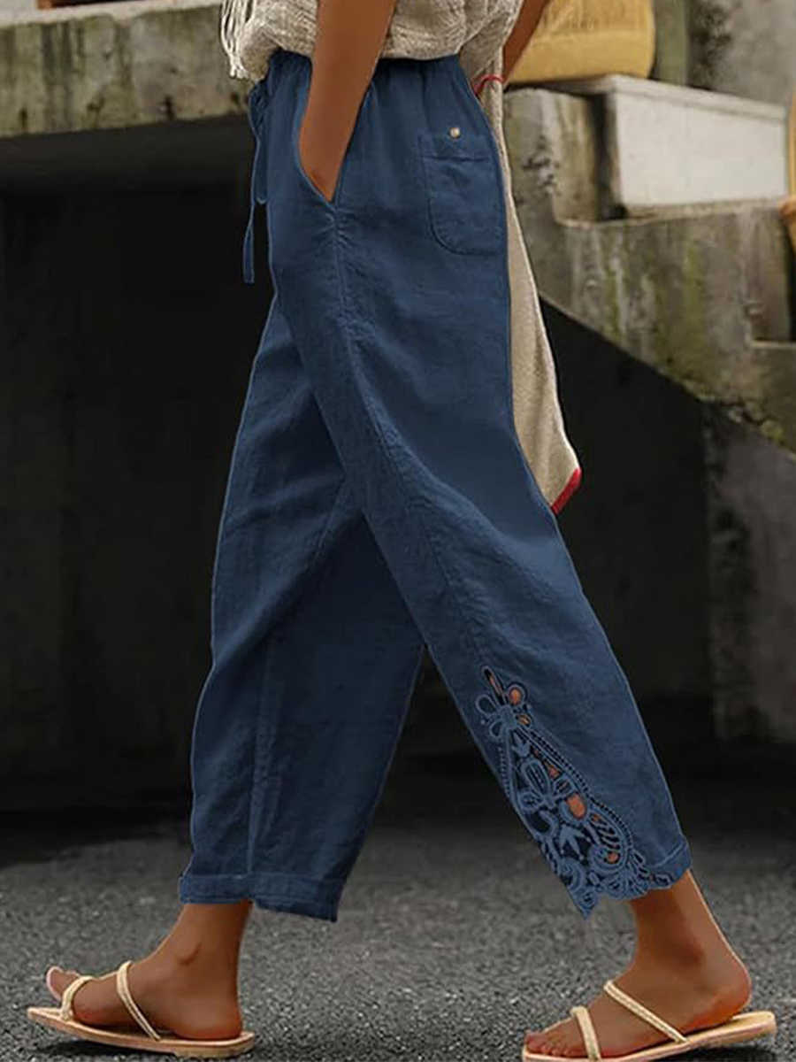 Women's Elegant Lace Patchwork Linen Pants
