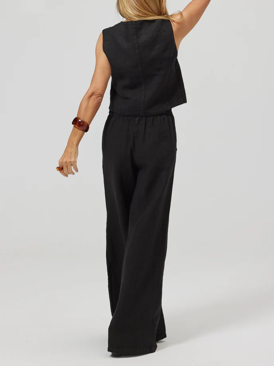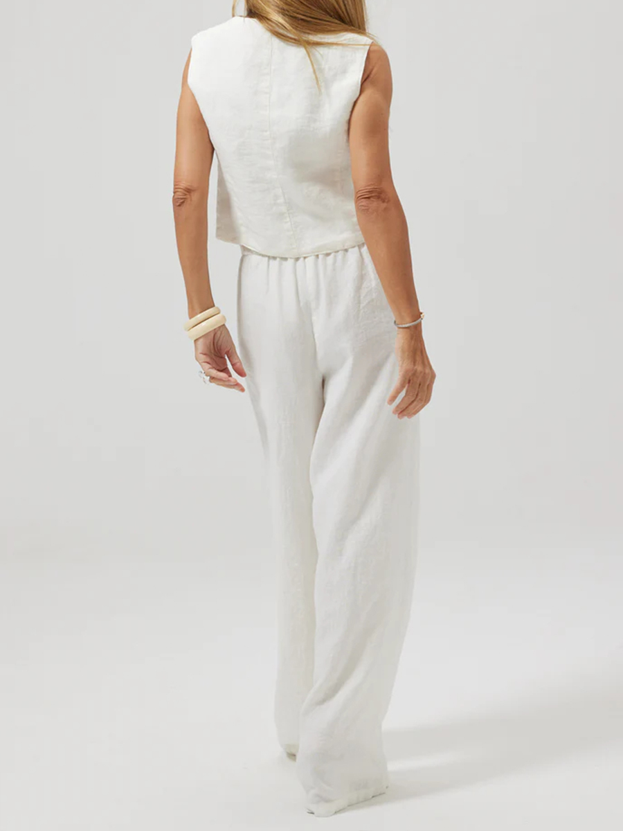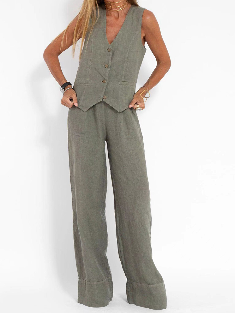 Women's Fashion Vest Splicing Solid Color Cotton and Linen Casual Suit