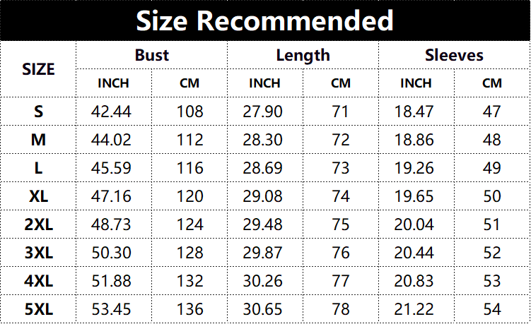 Size Chart: