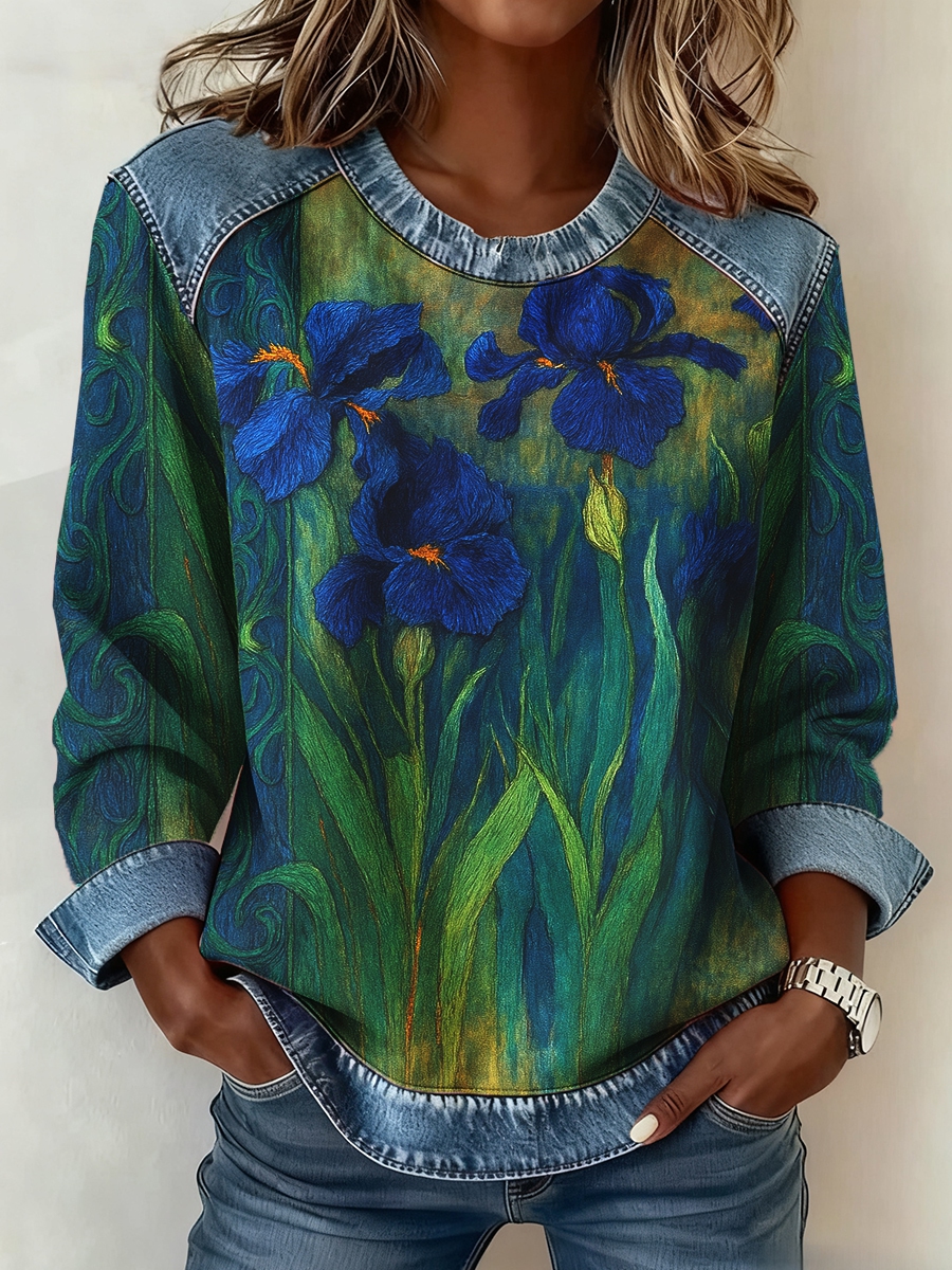 Women's Fleur-de-lis Floral 3D Print Denim Sweatshirt