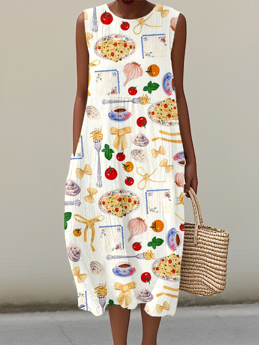 Women's Food Art Print Linen Dress