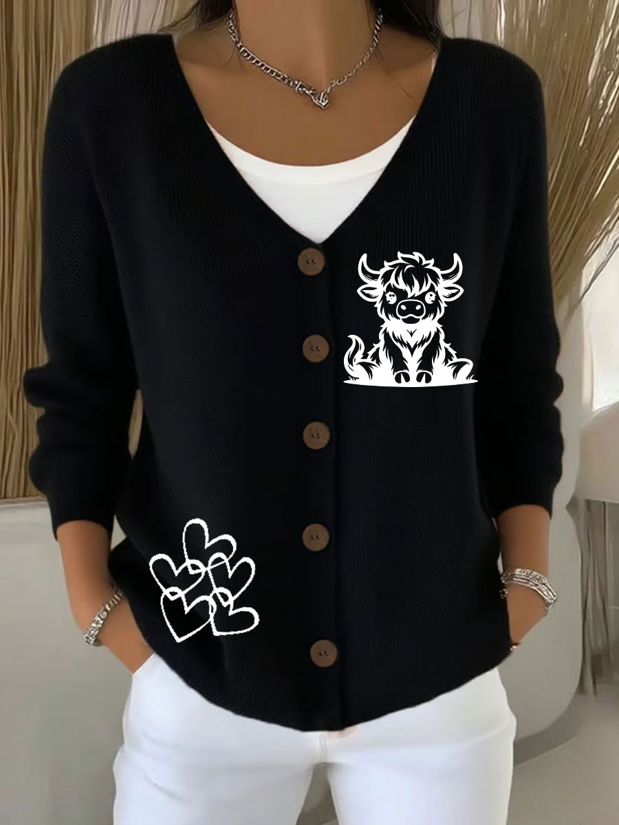Women's Highland Cow Print Casual Cardigan