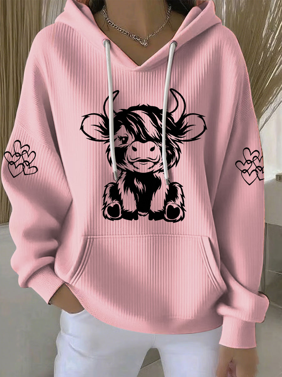 Women's Highland Cow Print Casual Hoodie