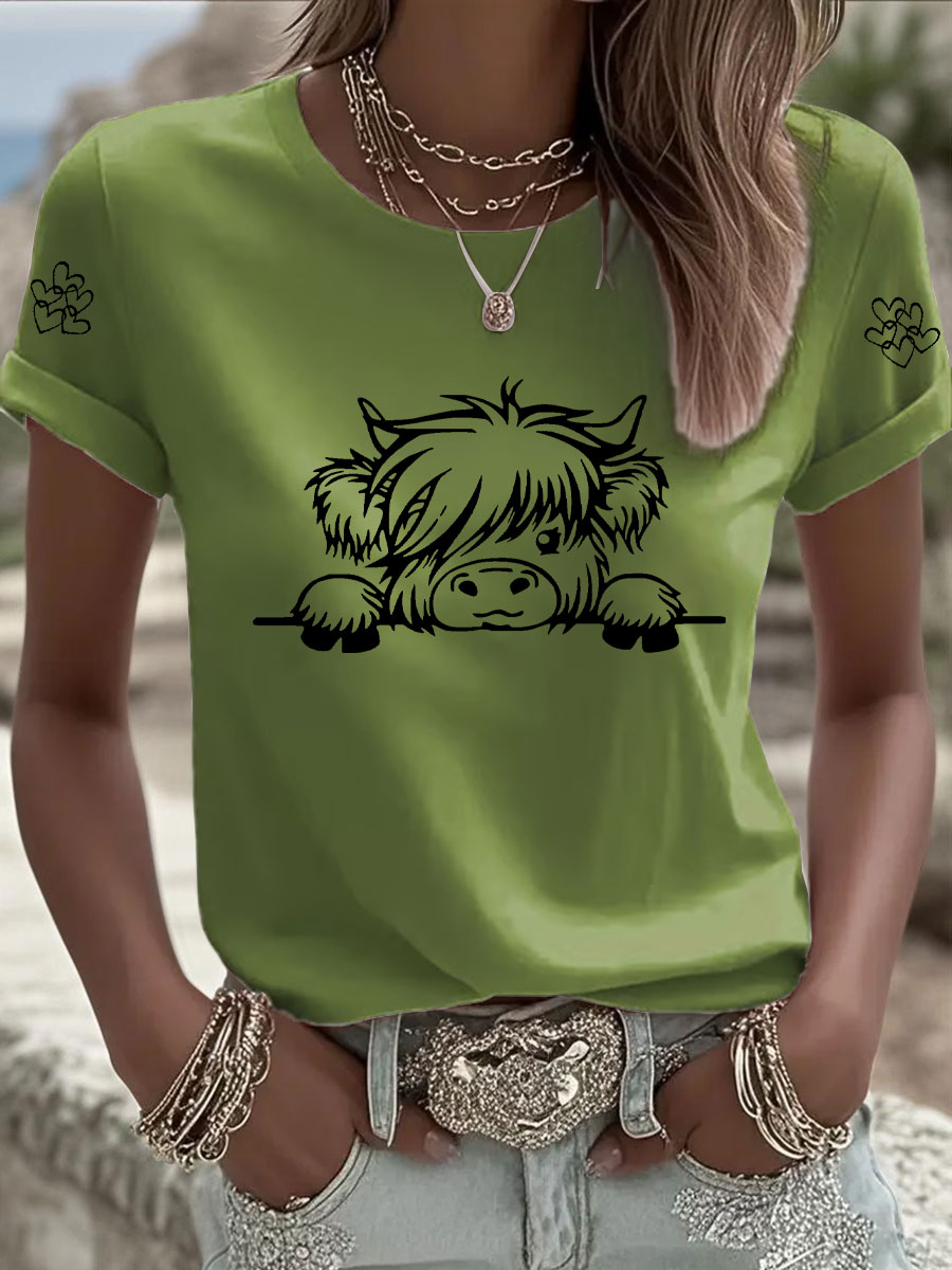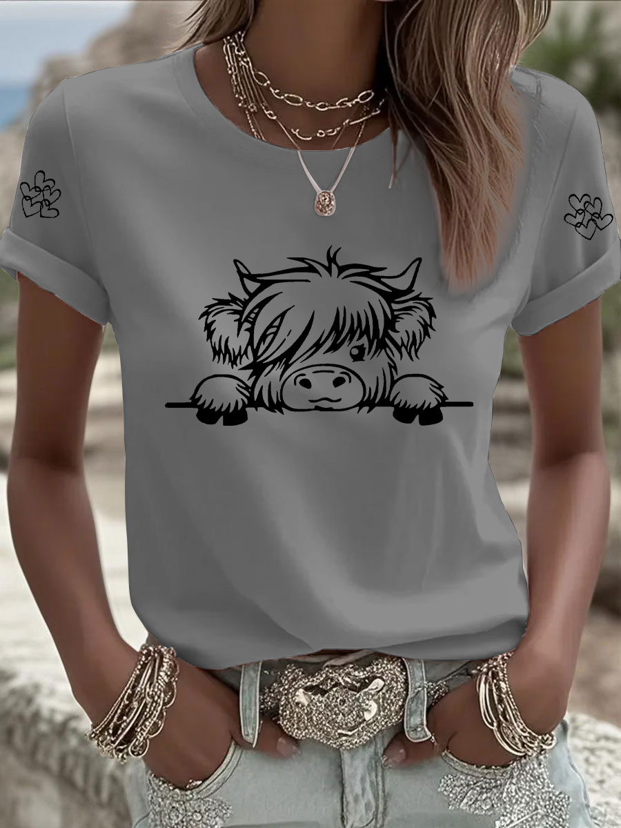 Women's Highland Cow Print Casual T-shirt