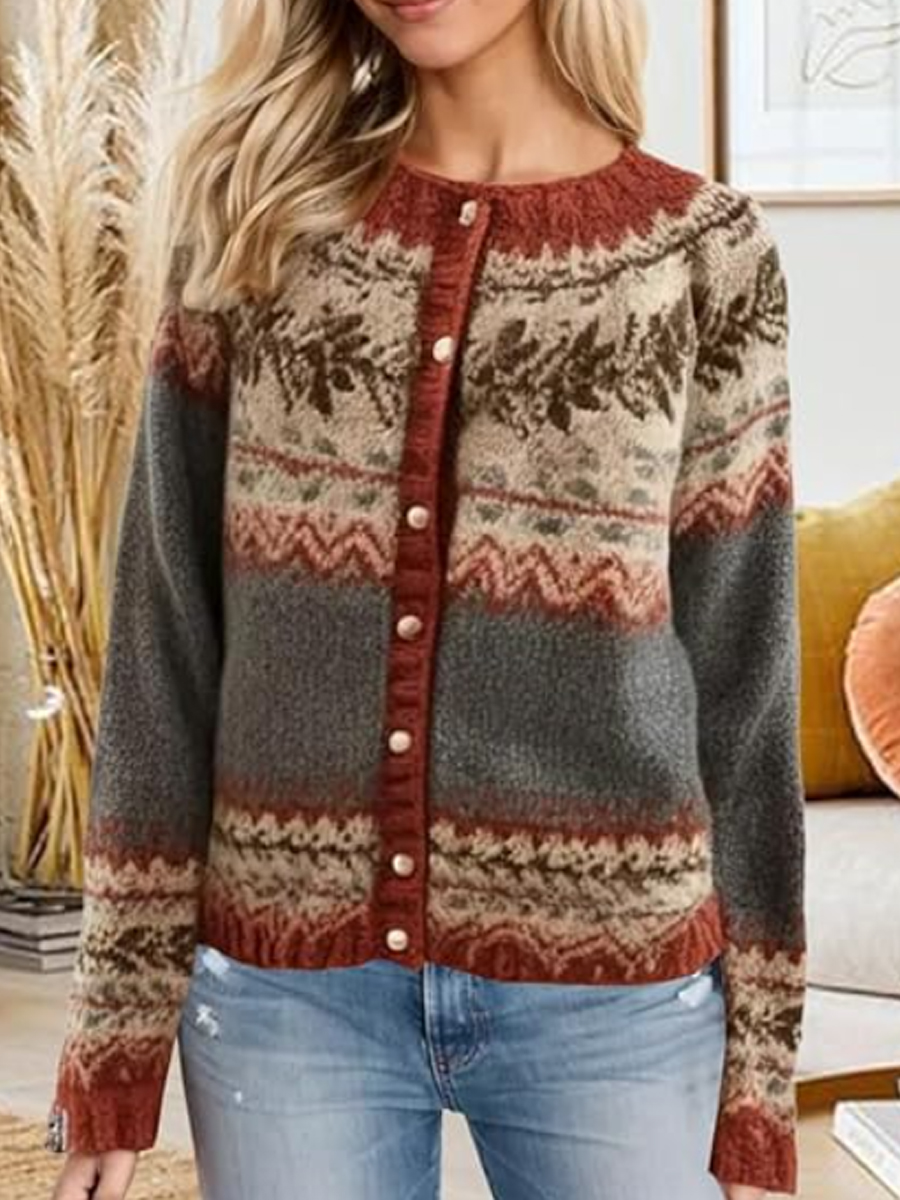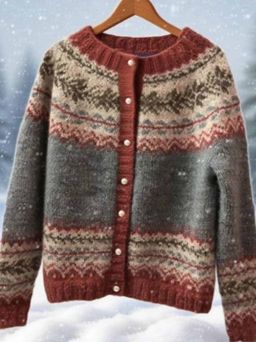 Women's Icelandic Sweater Casual Comfort Pearl Button Knit Cardigan