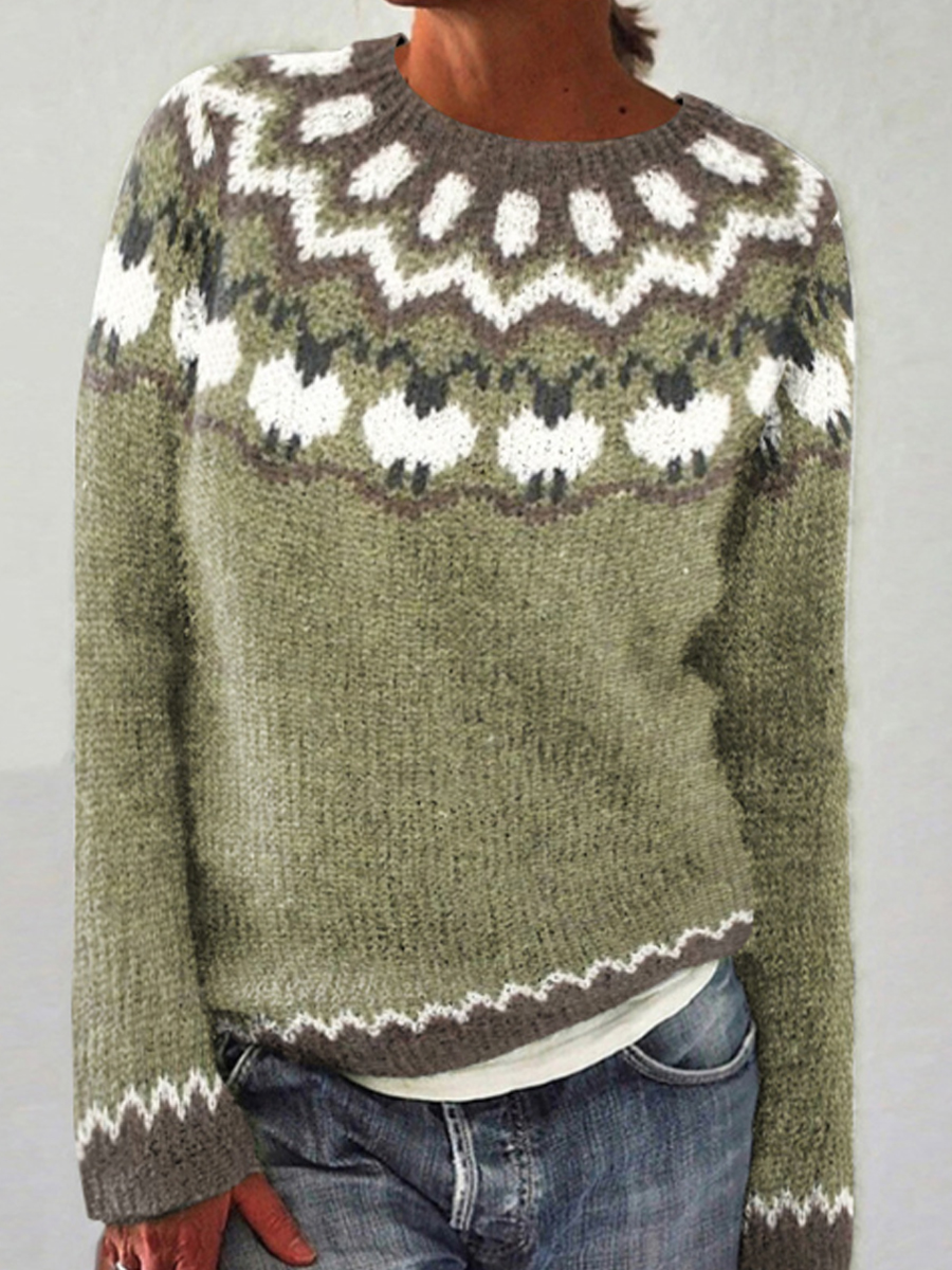 Women's Icelandic Sweater Crew Neck Loose Pullover