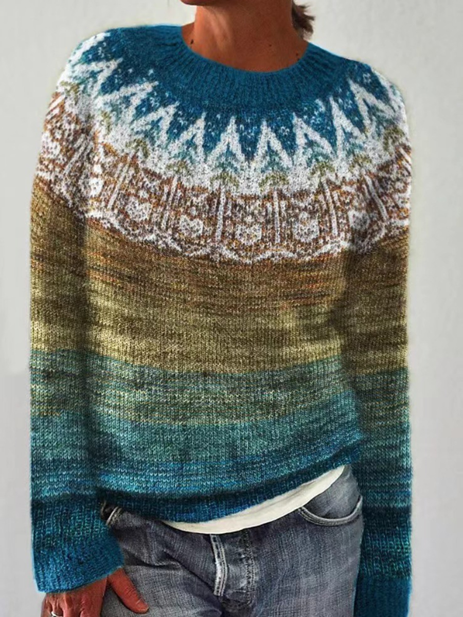 Women's Icelandic Sweater Crew Neck Loose Pullover