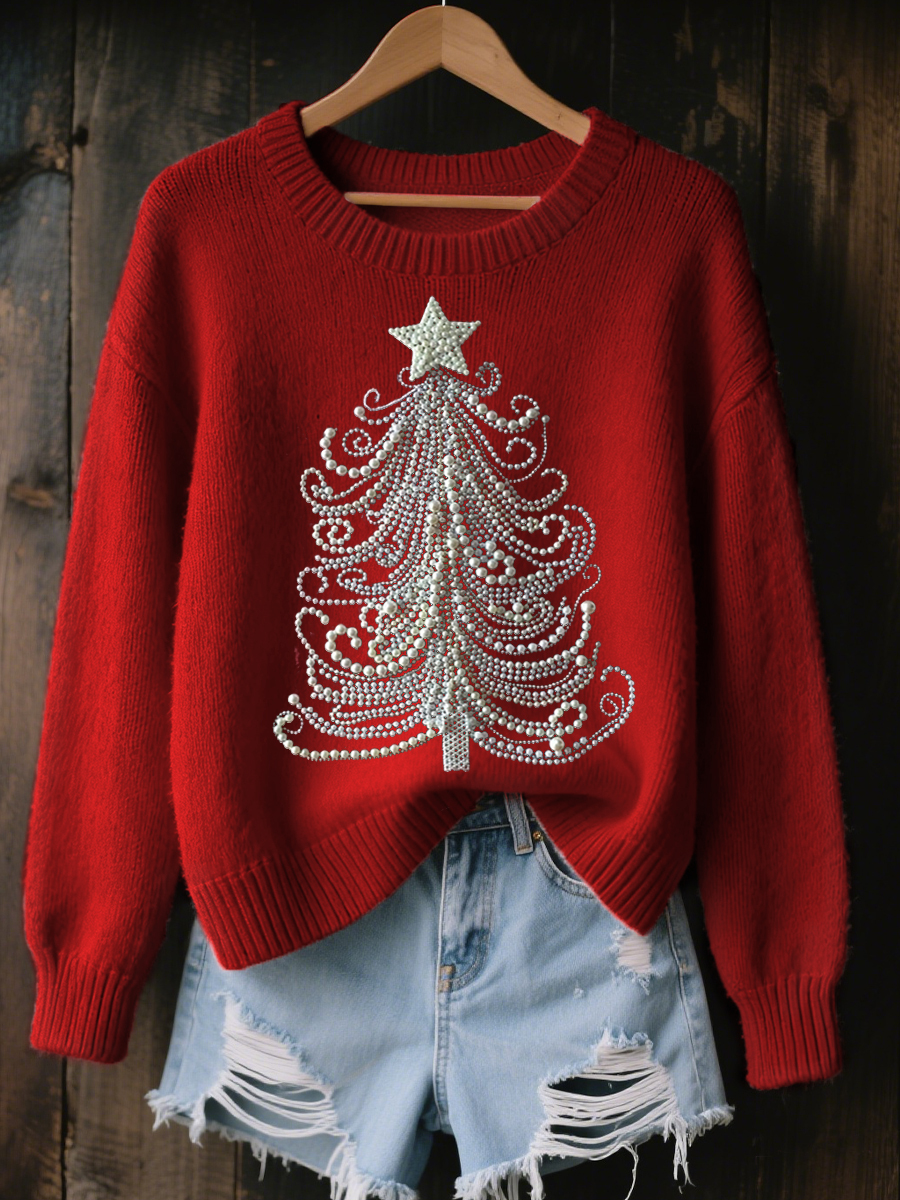 Women's Jewelry Art Christmas Tree Pattern Cozy Knit Sweater