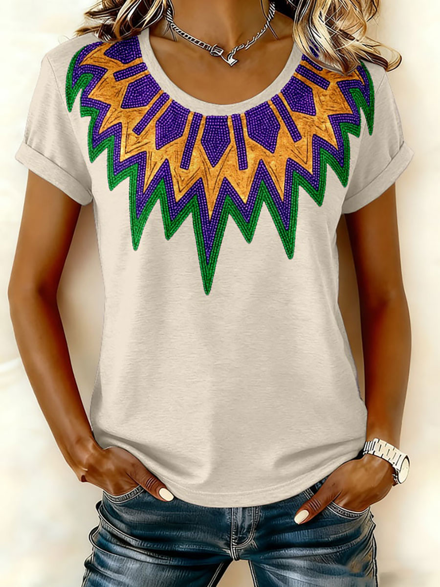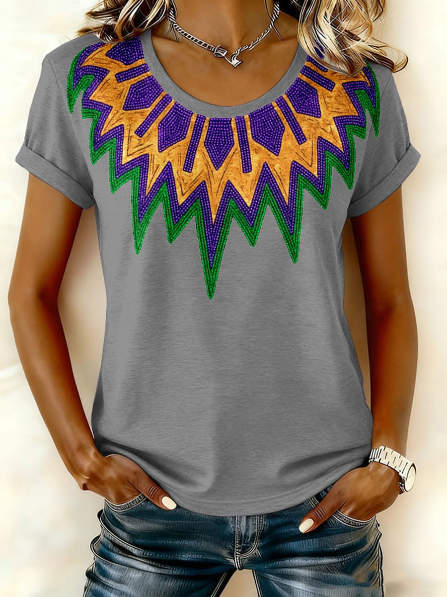 Women's Mardi Gras Printed Casual T-shirt