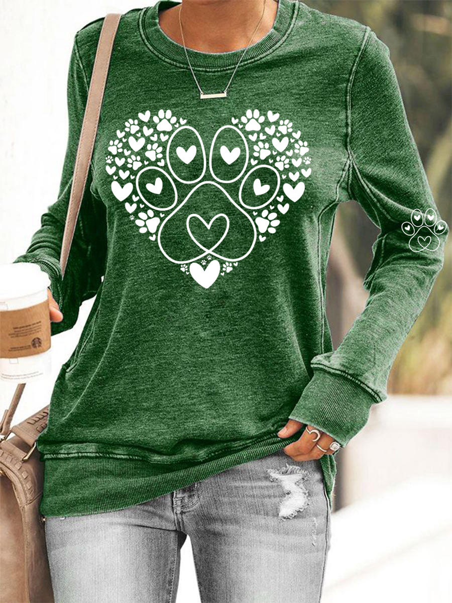 Women's Paw Heart Print Dog Lovers Valentine's Day Casual Sweatshirt