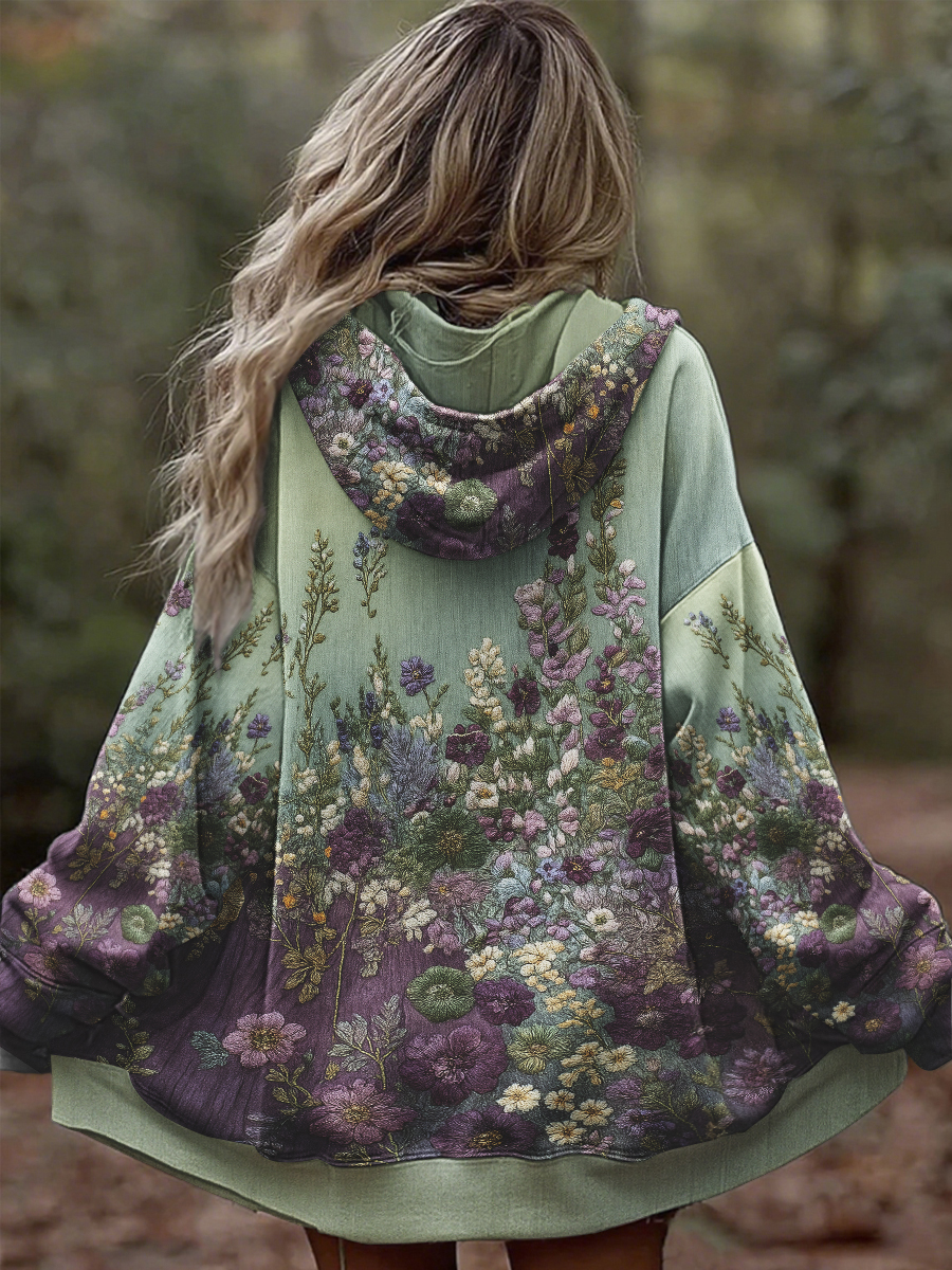 Women's Retro 3D Floral Gradient Comfortable Warm Zipper Oversized Hoodie