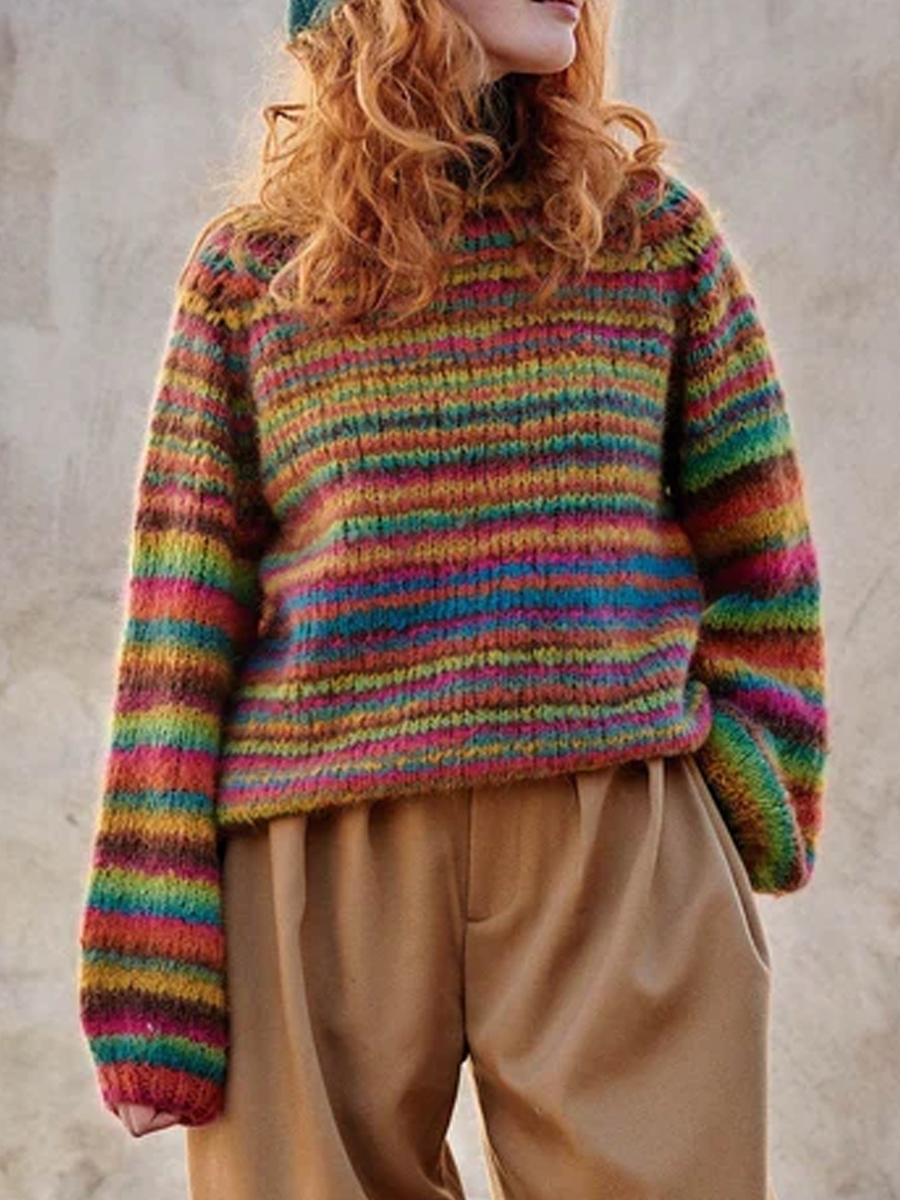 Women's Retro Color Block Stripe Abstract Icelandic Sweater