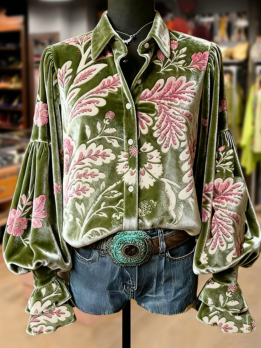 Women's Retro Plants Flowers Art Print Long Sleeve Top