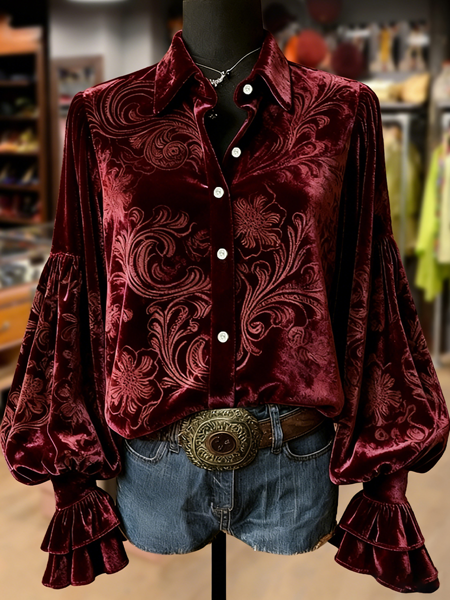 Women's Retro Plants Flowers Art Print Long Sleeve Top