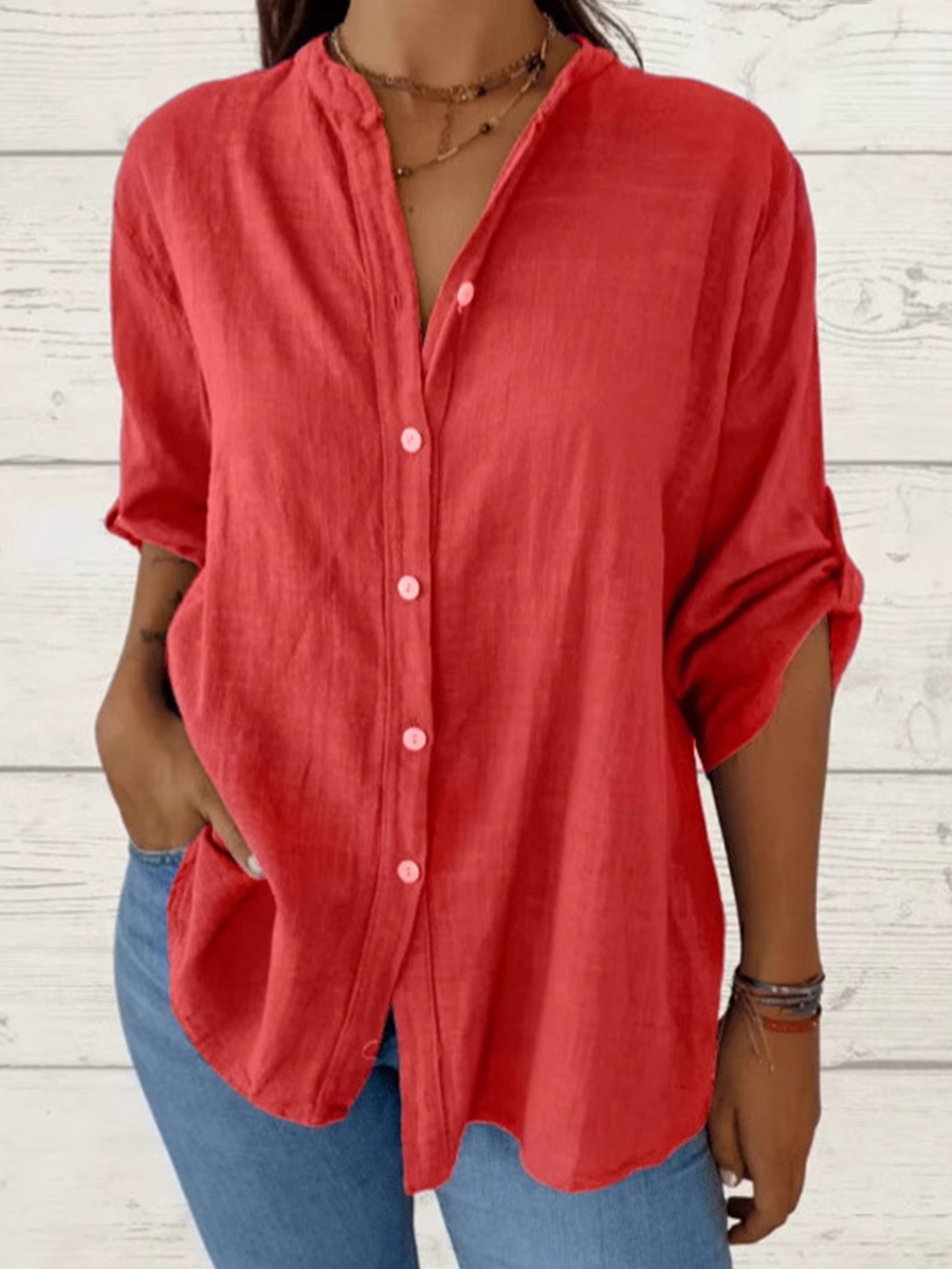 Women's Simple Solid Color Linen Shirt