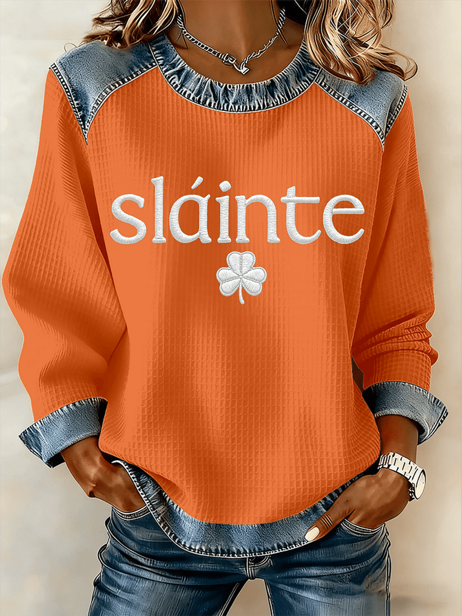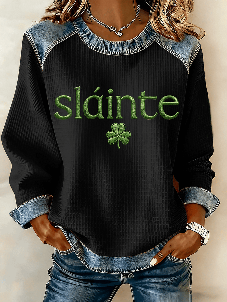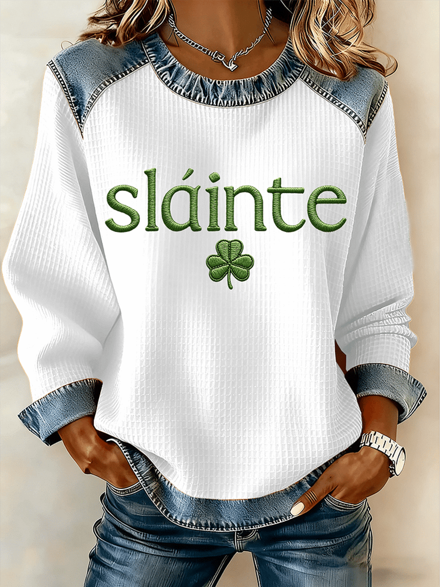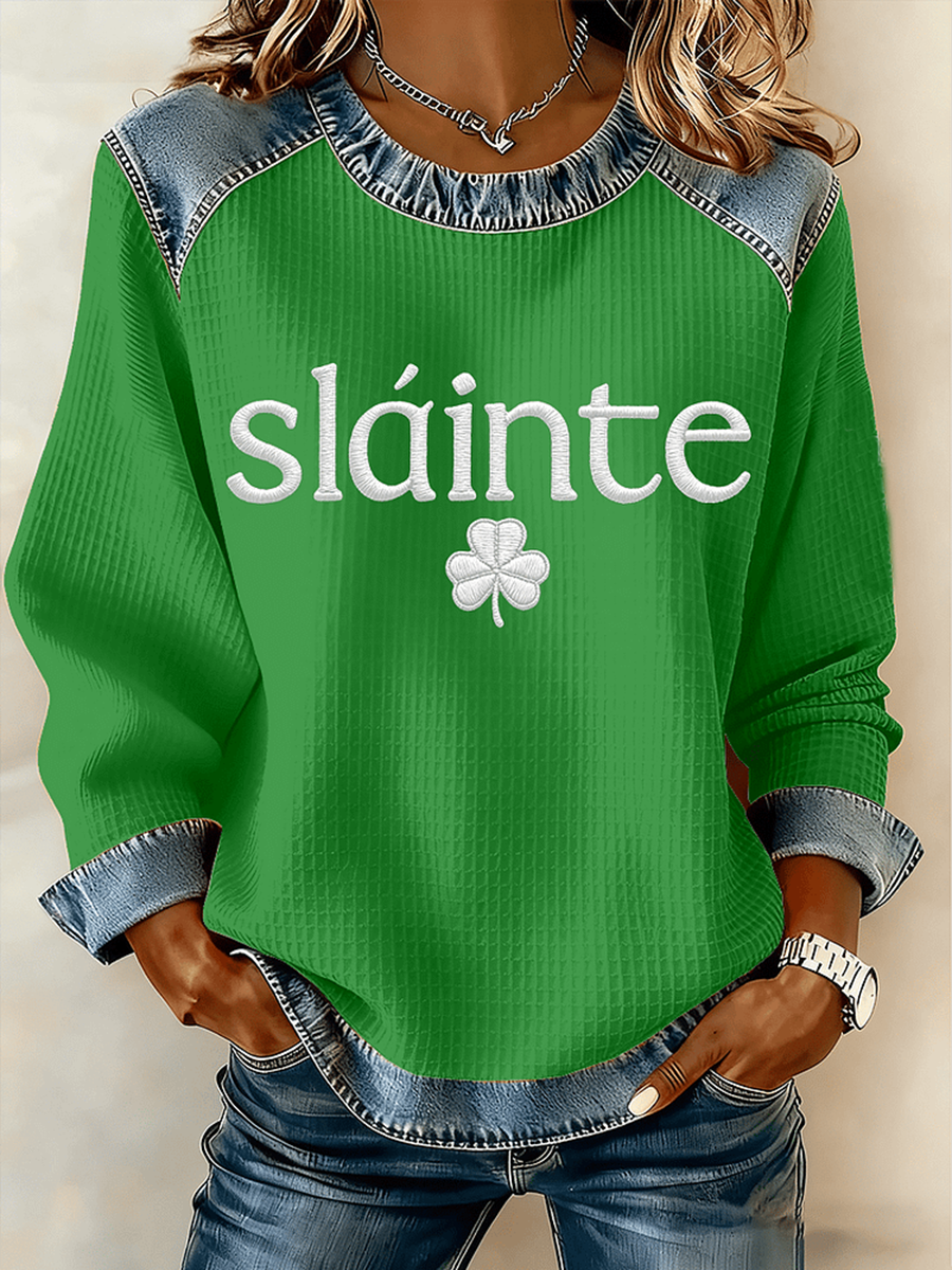 Women's St. Patrick's Day Slainte Denim Patchwork Top