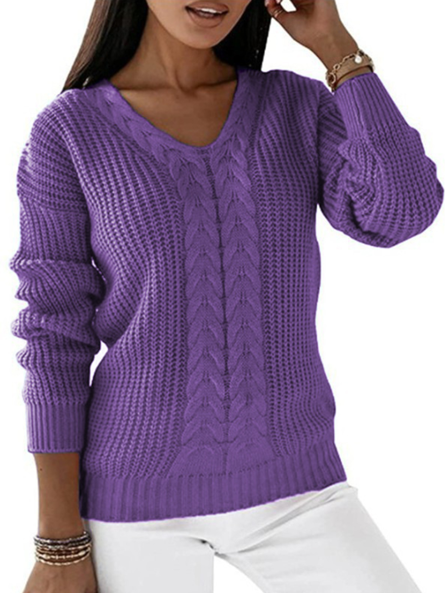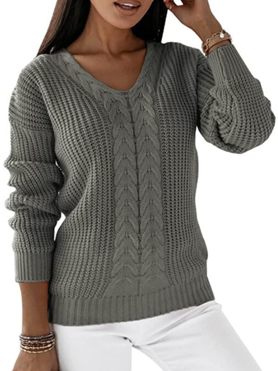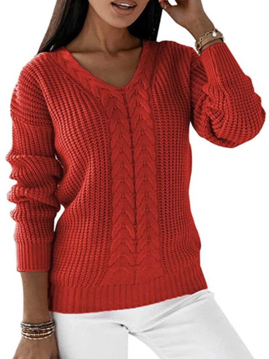 Women's V-neck Long-Sleeved Cable Knit Sweater