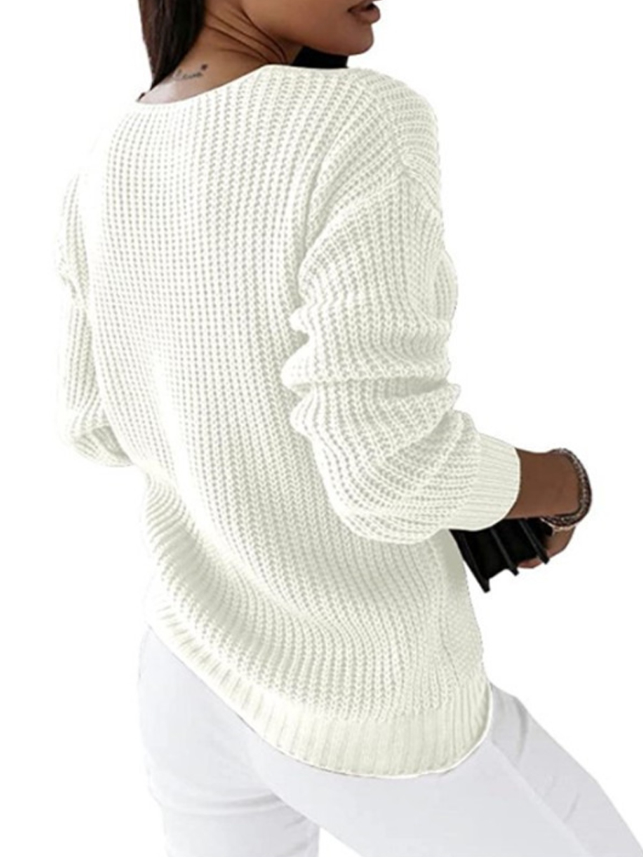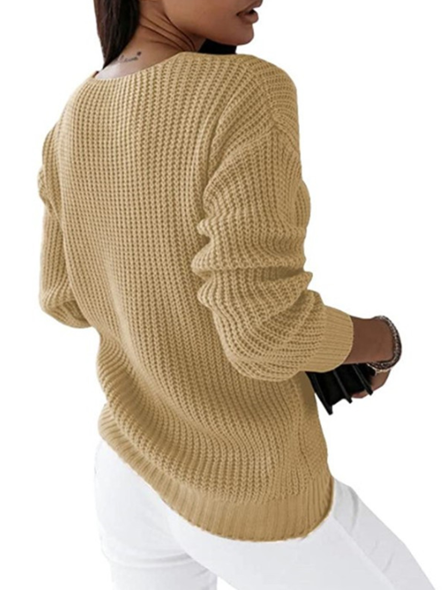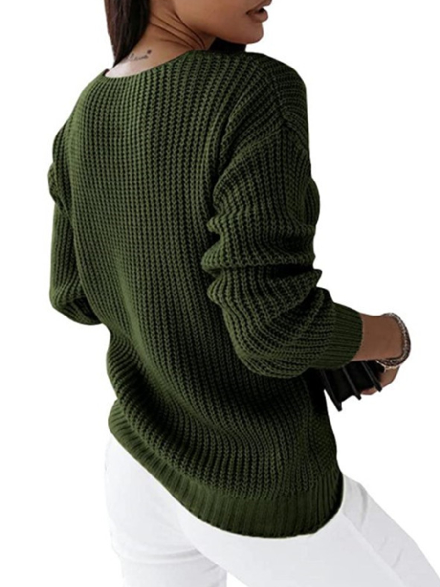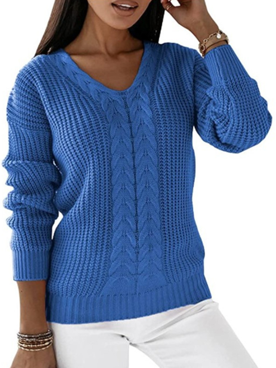 Women's V-neck Long-Sleeved Cable Knit Sweater