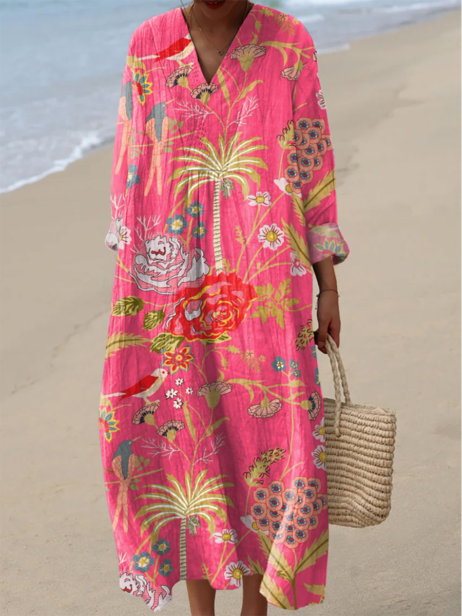 Women's Vintage Floral Art Print 3/4 Sleeve Dress