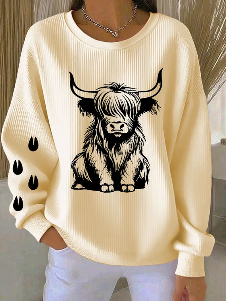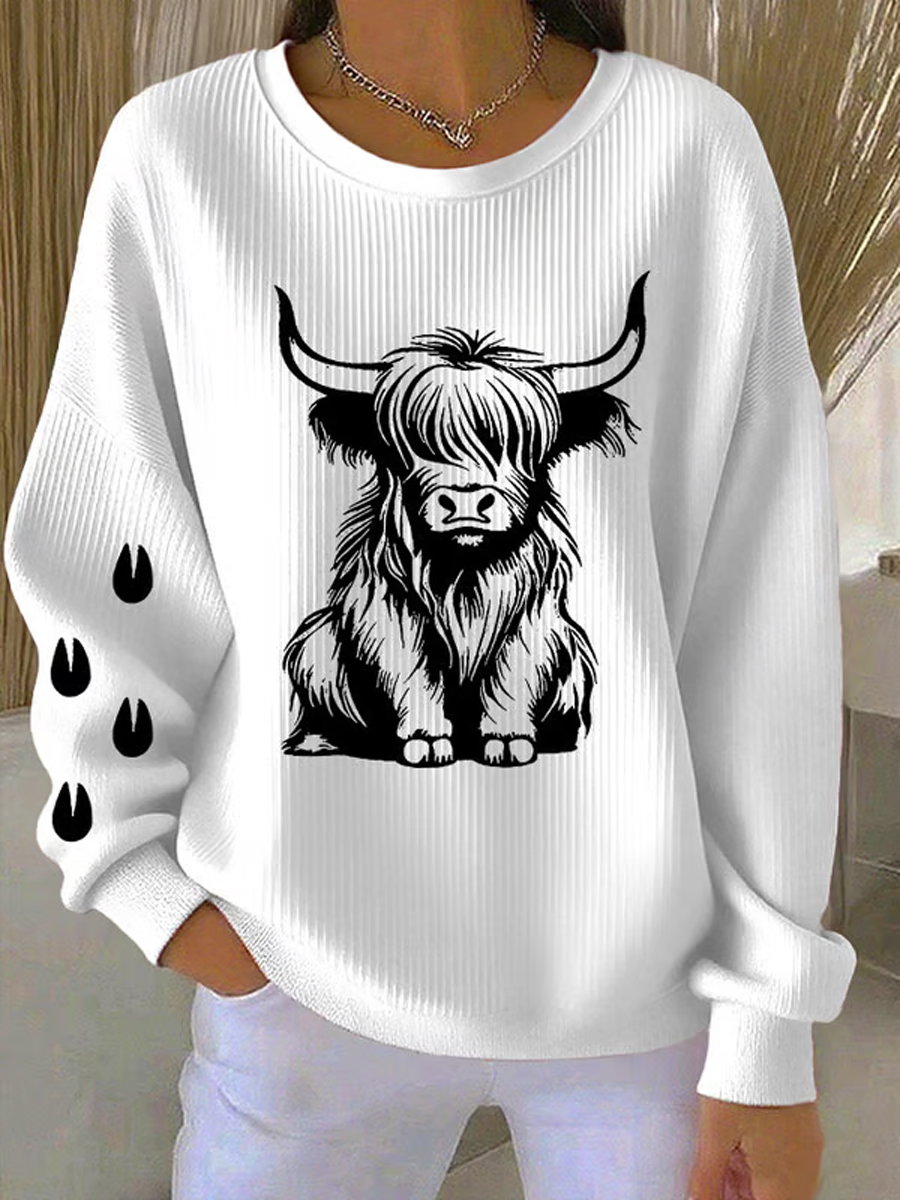 Women's West Highland Cow Print Crew Neck Long Sleeve Sweats