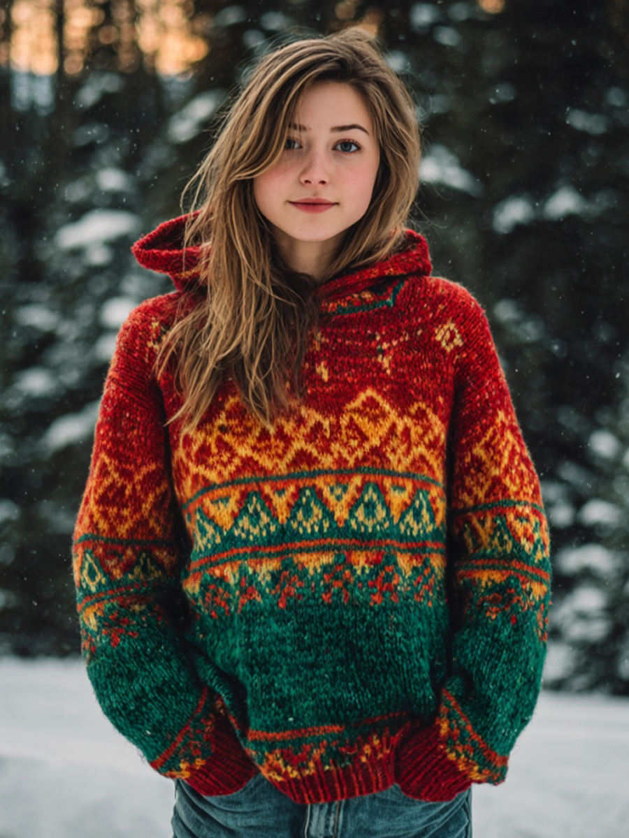 Women's Western Inspired Jacquard Cozy Knit Hoodie