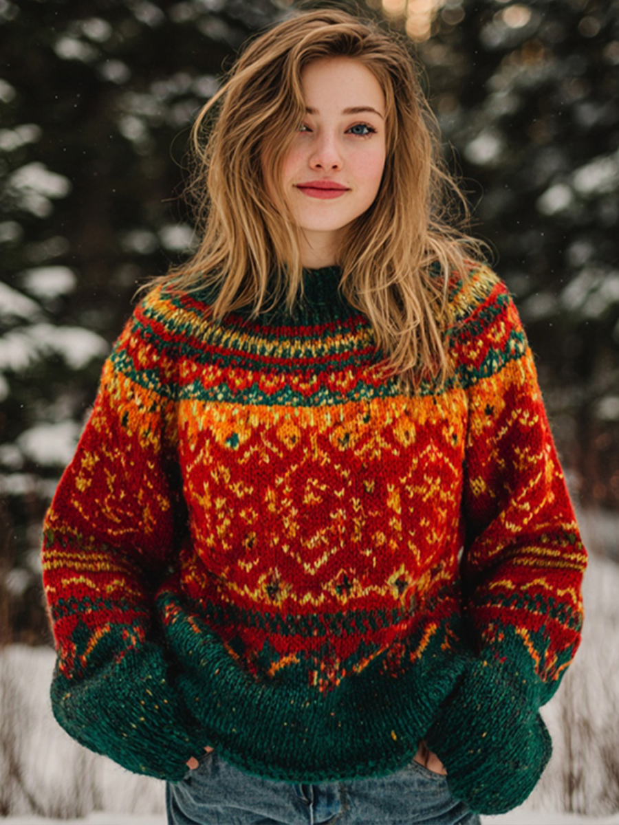 Women's Western Inspired Jacquard Cozy Knit Sweater