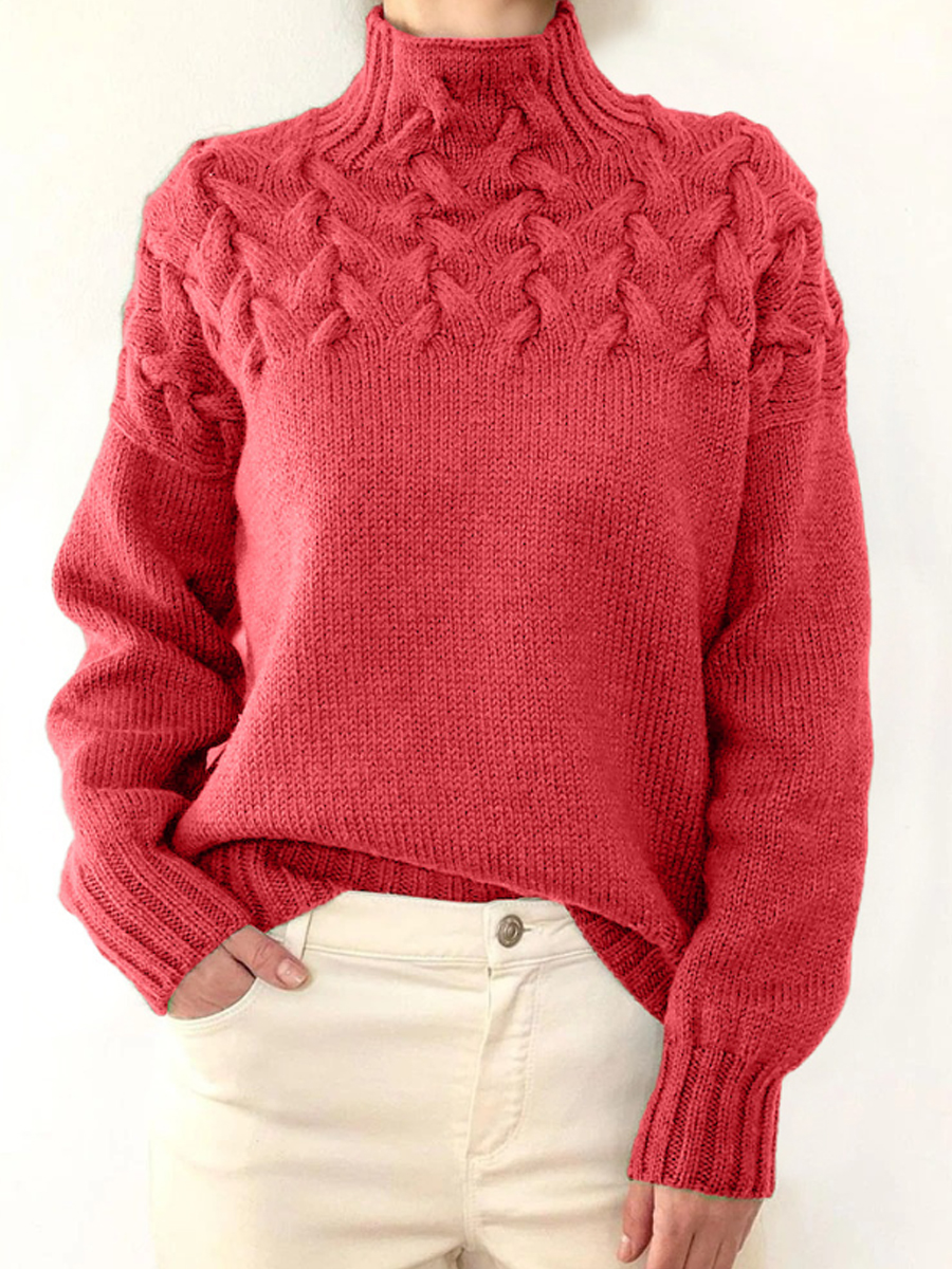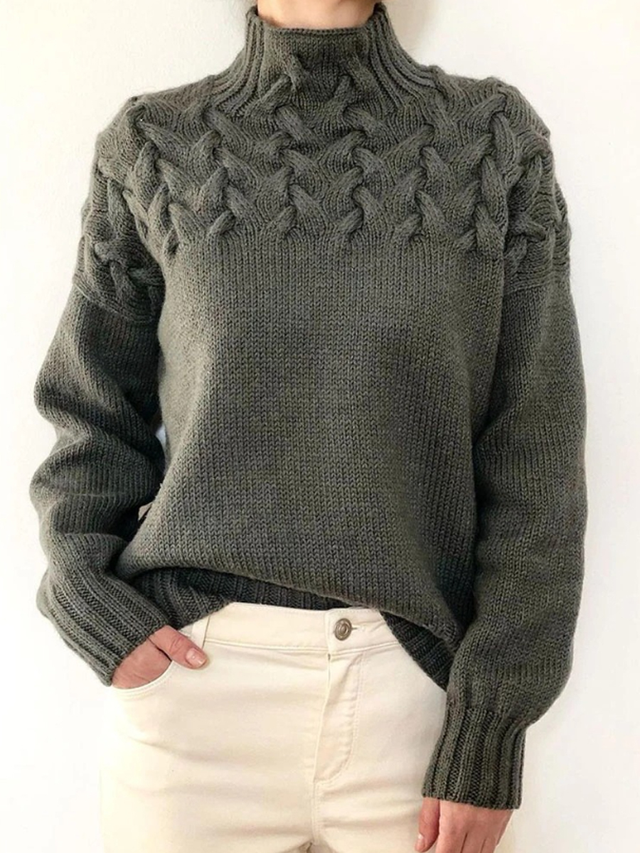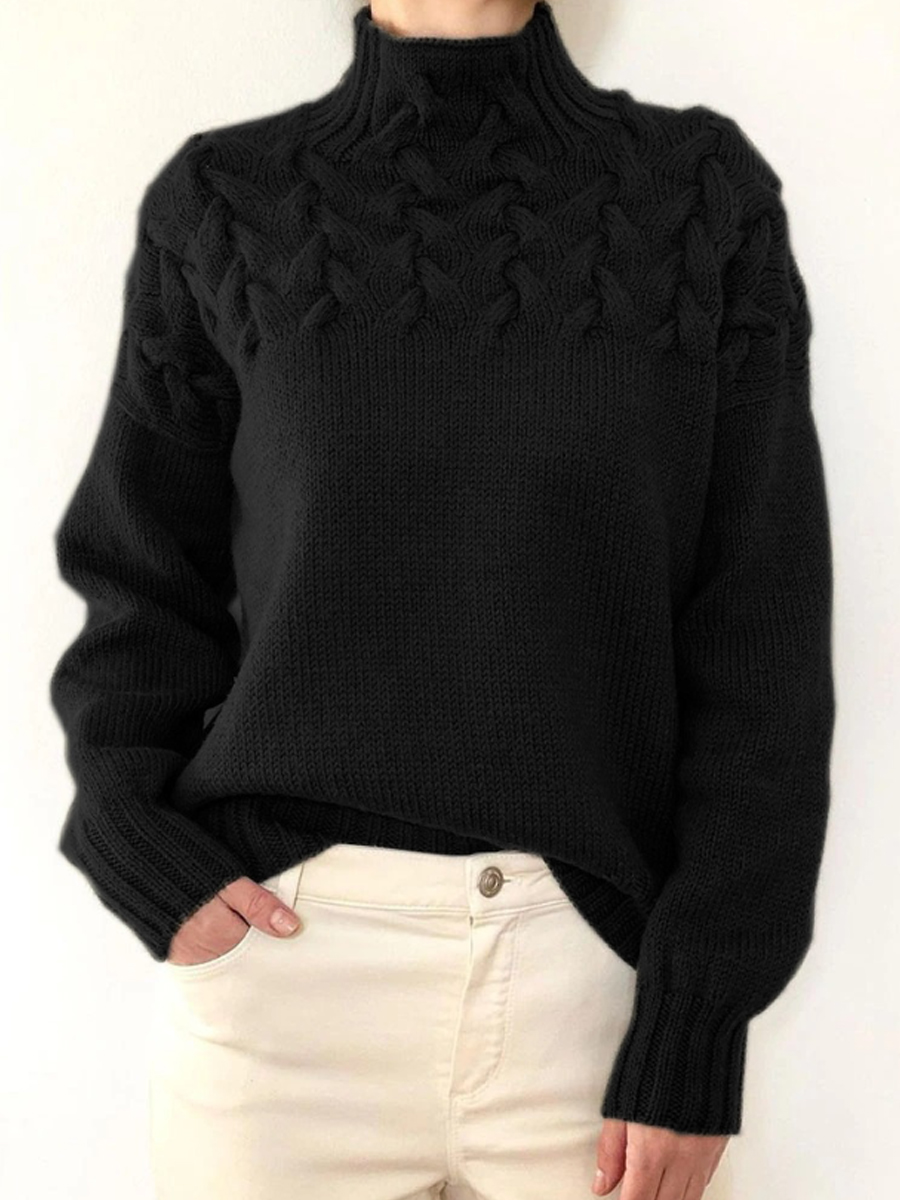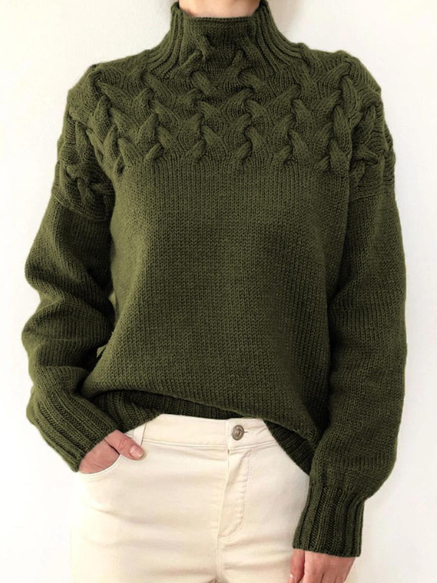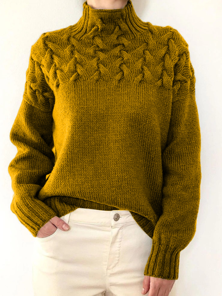 Women's Winter Turtleneck Long Sleeve Chunky Cable Knit Sweater